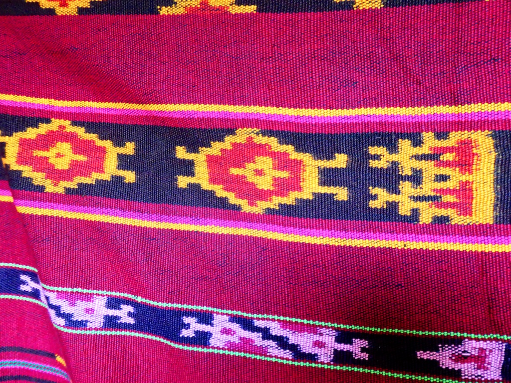 Les sarongs que nous présente cette charmante dame restent des classiques de qualité moyenne : coton du marché et couleurs criardes d’origine chimique …