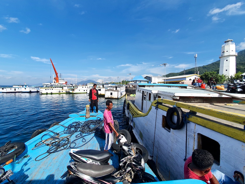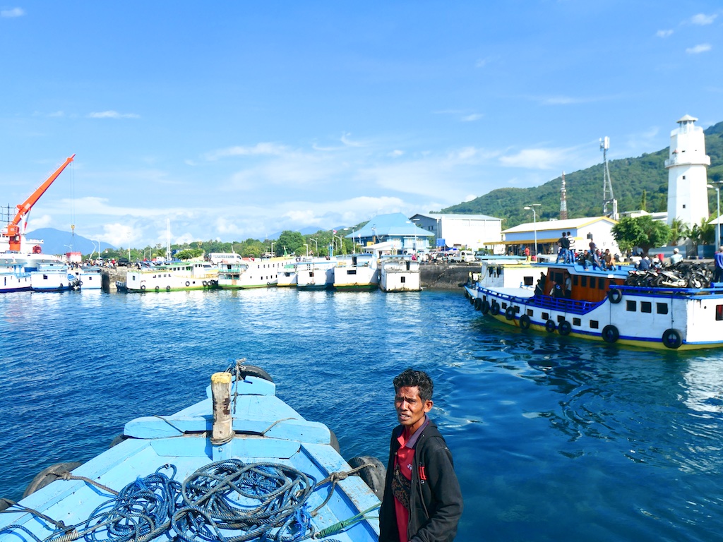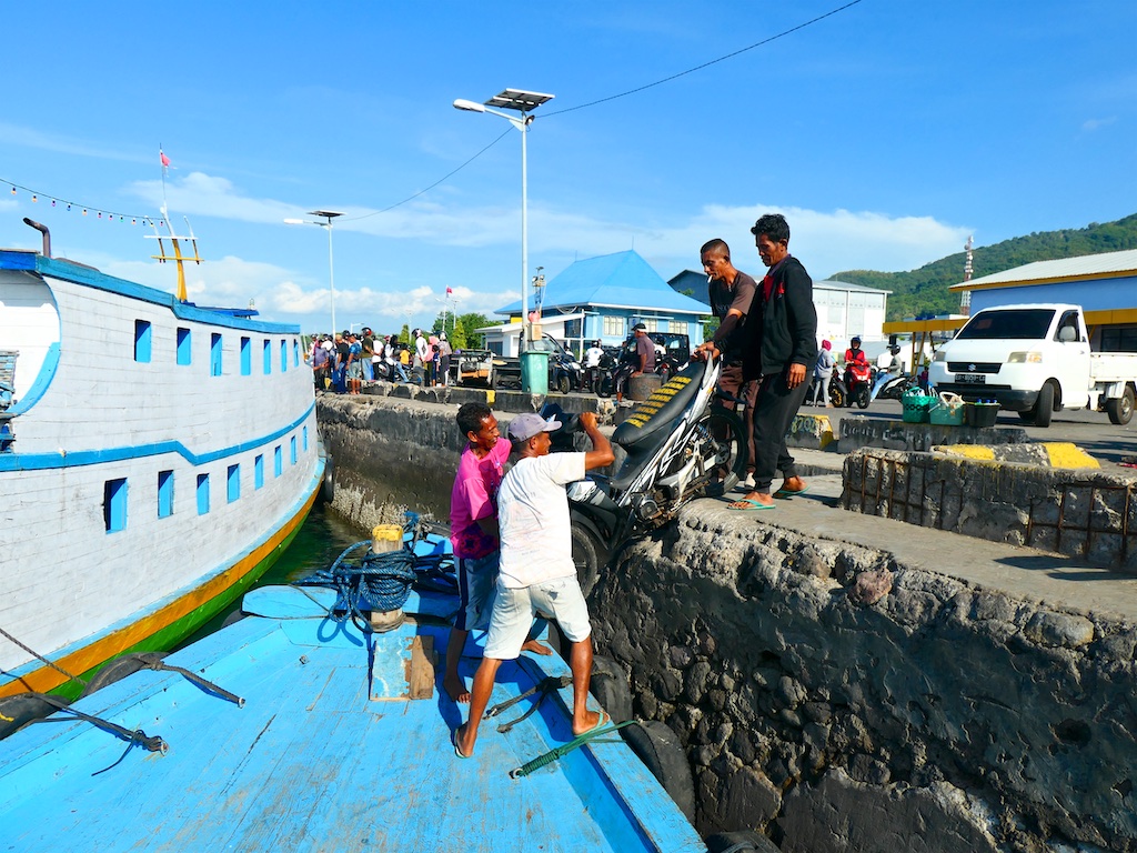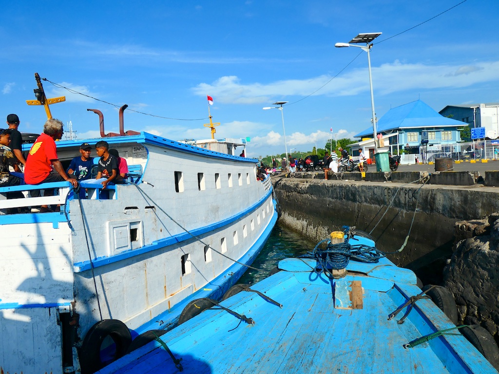 Pour aller à Solor il faut prendre un petit bateau de pêche qui tient grace à la peinture.