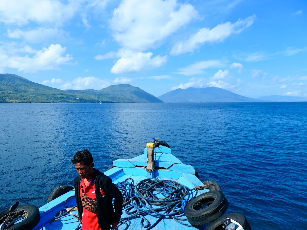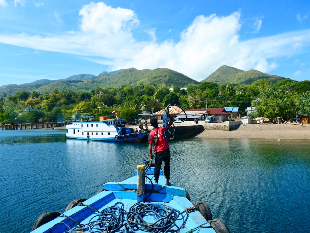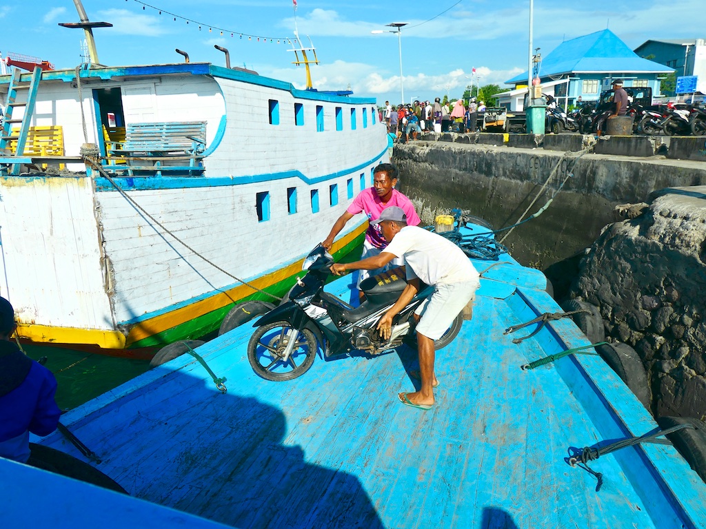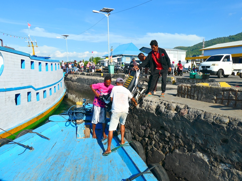 Pour aller à Solor il faut prendre un petit bateau de pêche qui tient grace à la peinture.