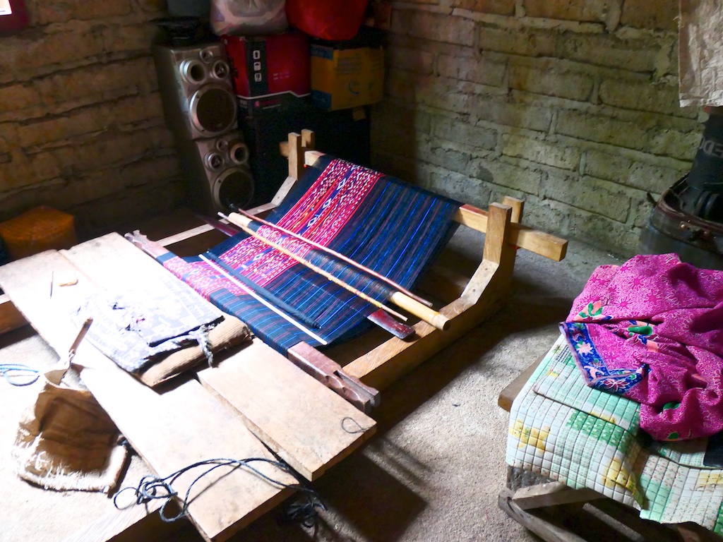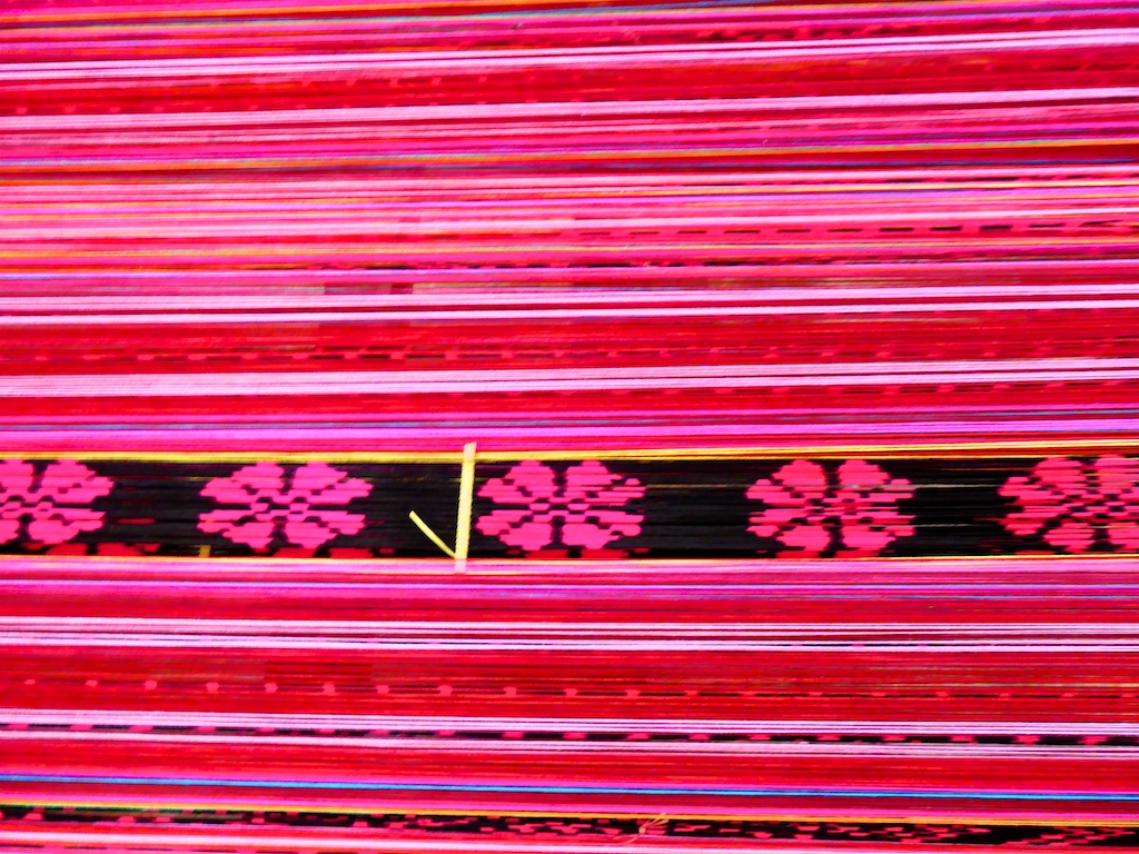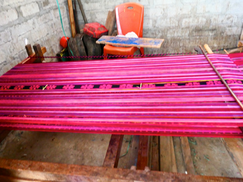 Les autres tissages dans les villages avoisinants sont très classiques…et essentiellement faits avec le coton du marché et des teintes synthétiques…