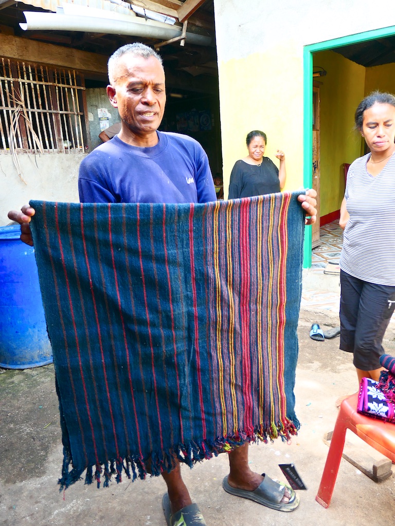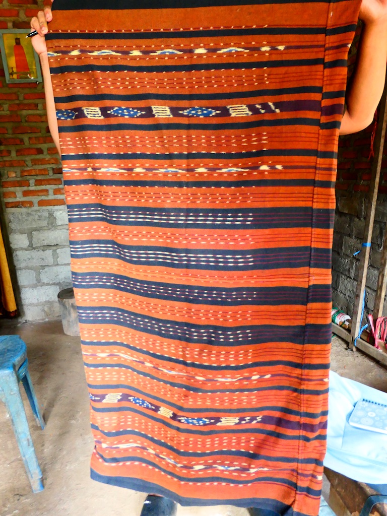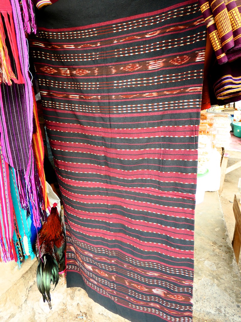 On s’arrête dans un beau village qui s’appelle Bubua et qui est célèbre pour la qualité de ses textiles …effectivement on trouve un beau sarong kapas (coton filé main, teintes naturelles et tissage main bien évidemment )…si la tisserande n’en demandait pas si cher …je pense que je serai repartie avec !!!