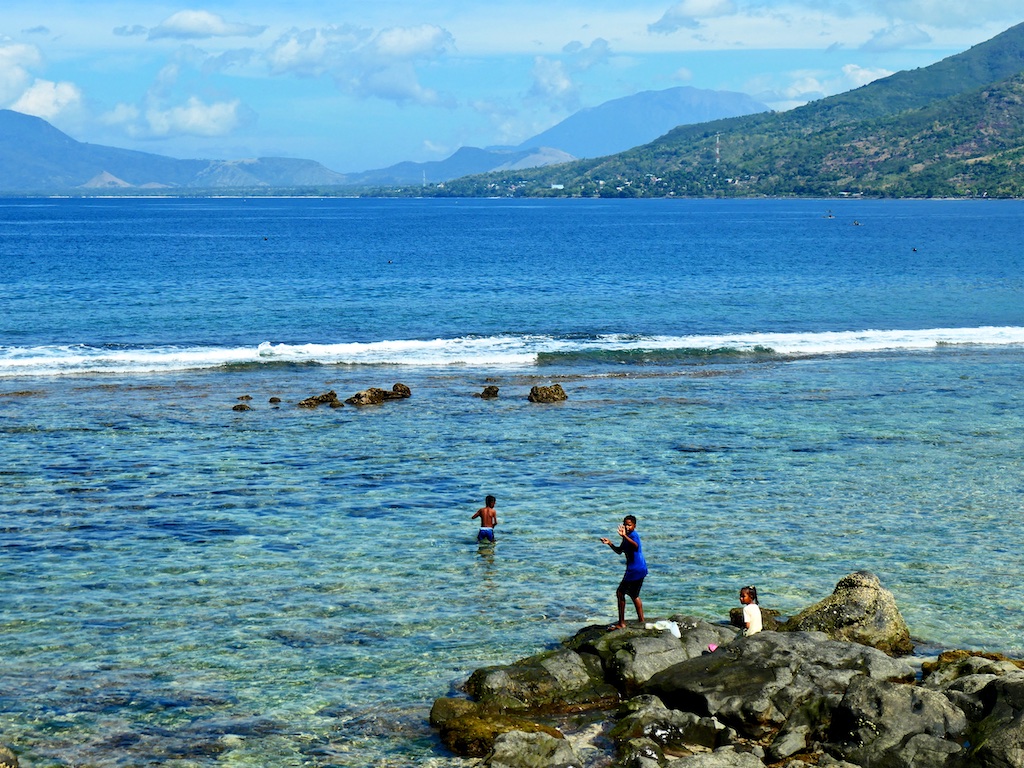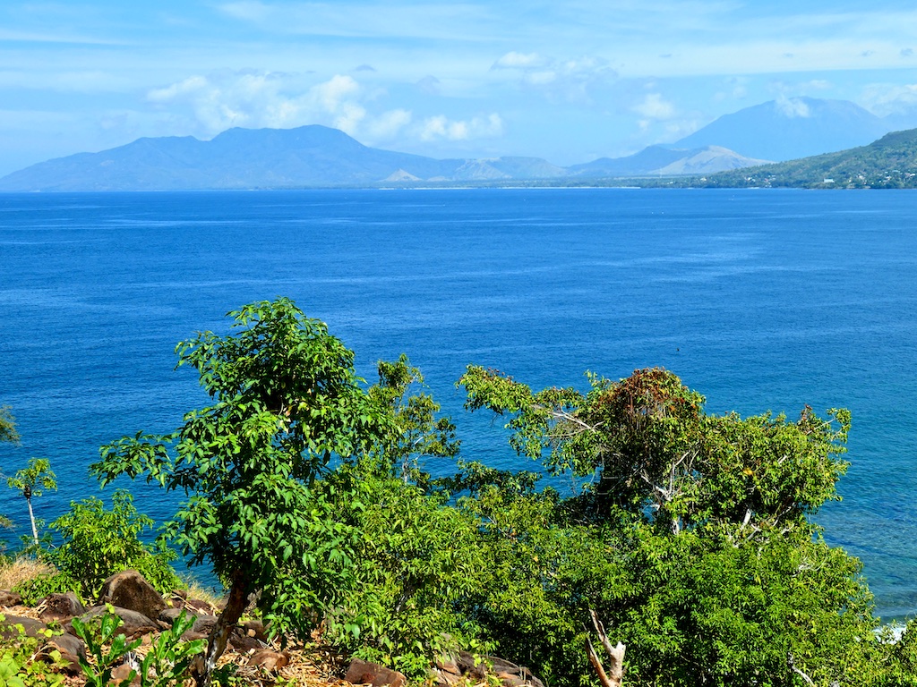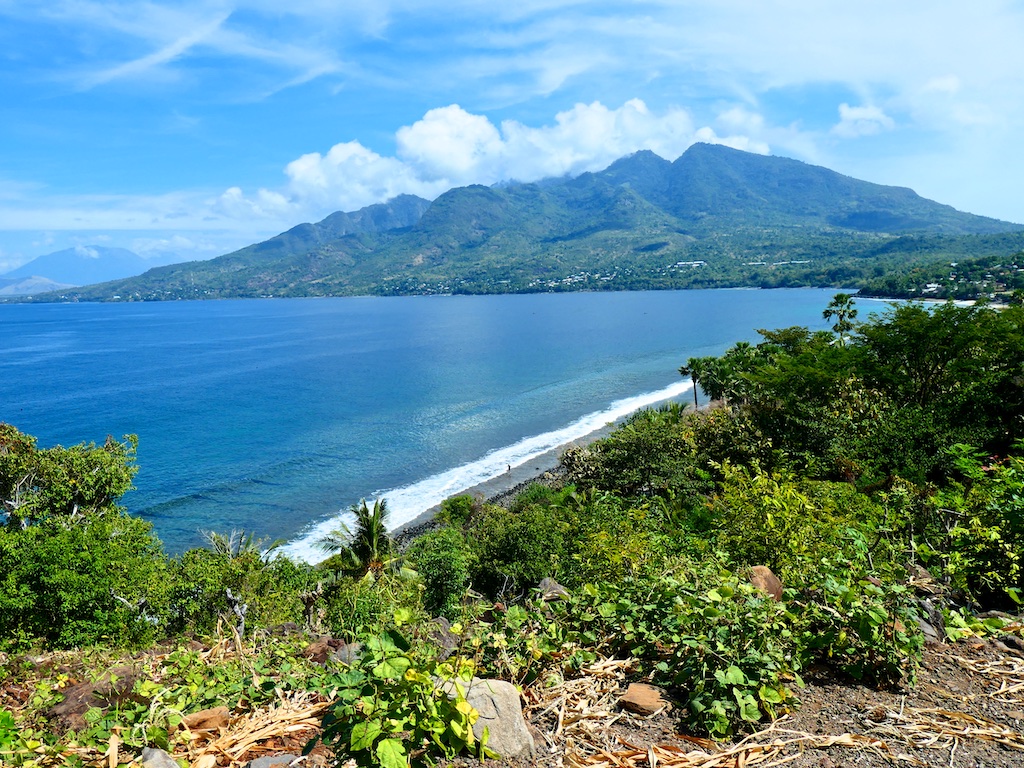 Cela nous permet de prendre une magnifique route en bord de mer avec une vue lointaine sur les volcans Lewotobi (mâle et femelle)de sinistre réputation (surtout le mâle !!!).