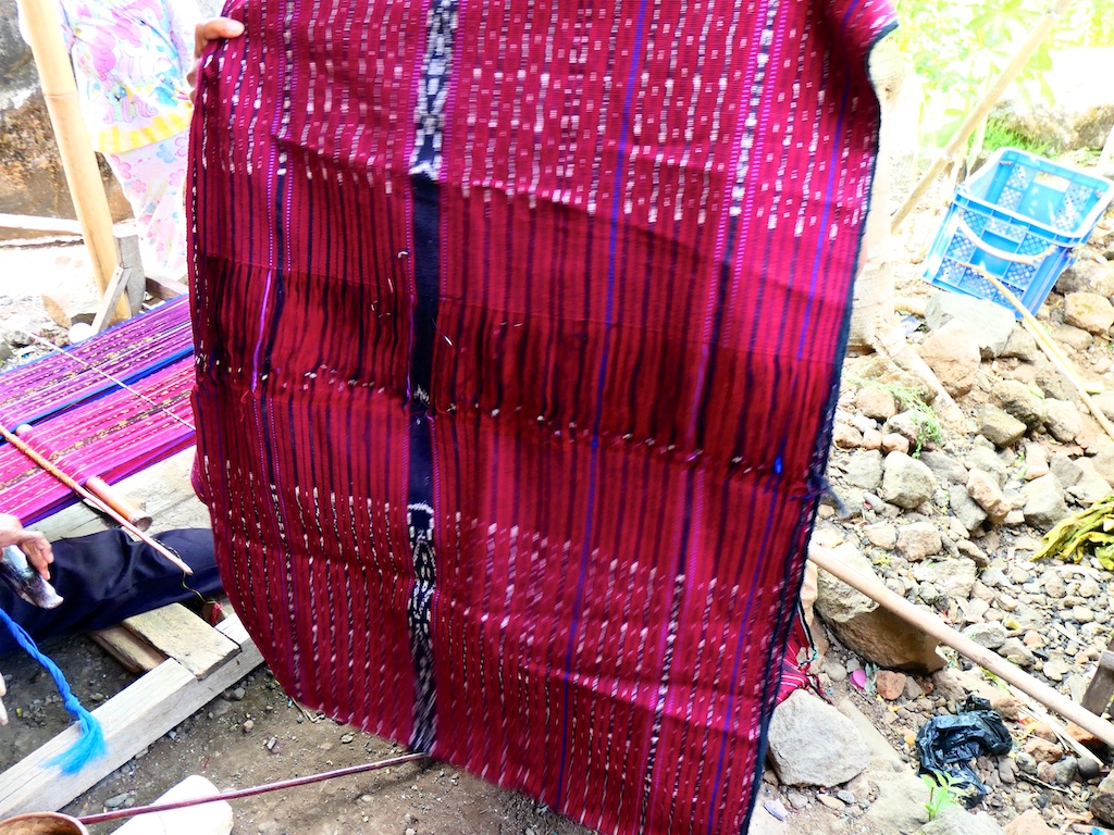 Les tissages présentés sont de bonne facture même si à mon giut ils sont moins beaux que ceux que nous avons vu à Ile Padung. En fait on fait un trajet qui fait le tour du volcan Ile Mandiri mais absolument sans risques car ce volcan est éteint depuis longtemps !!!