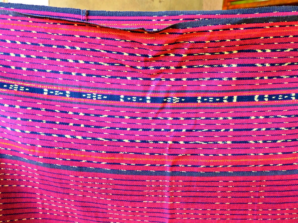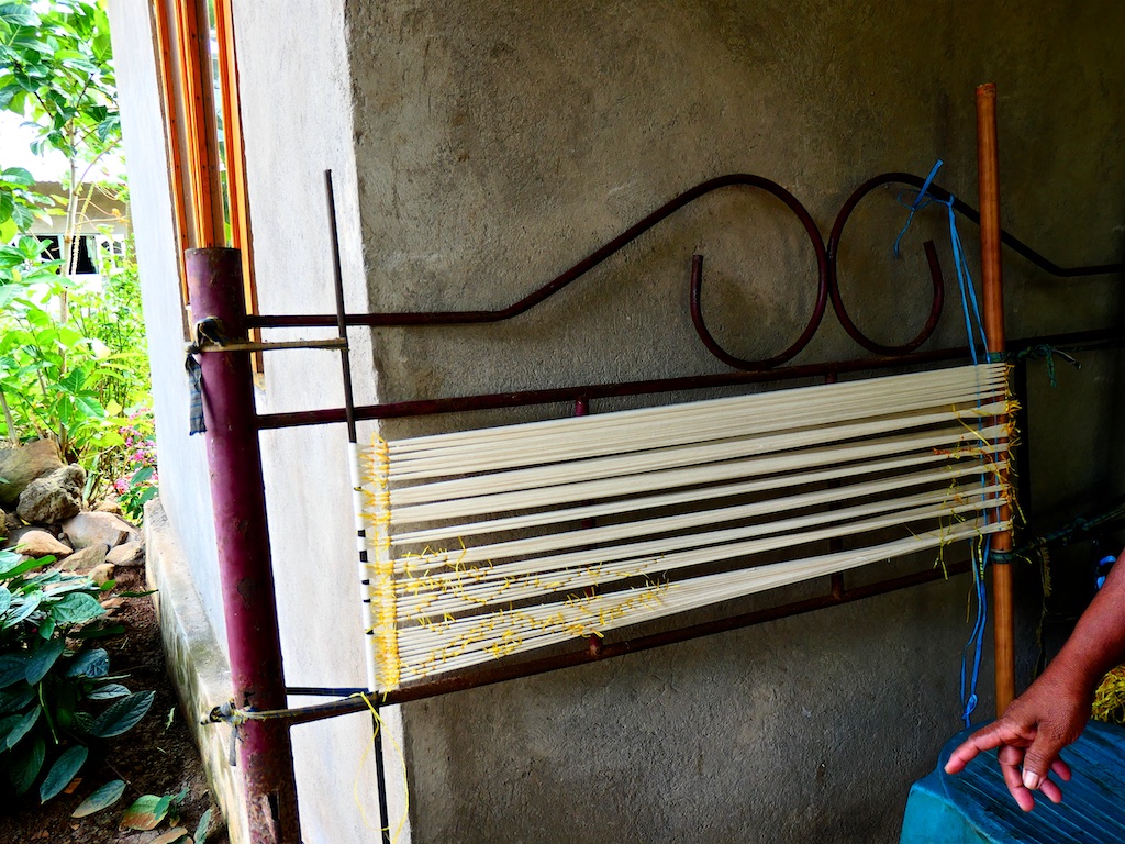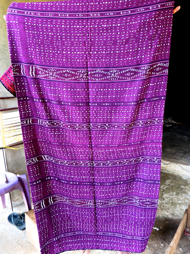 La dame qui habite cette magnifique maison et qui est tisserande nous présente plusieurs tissages kapas.