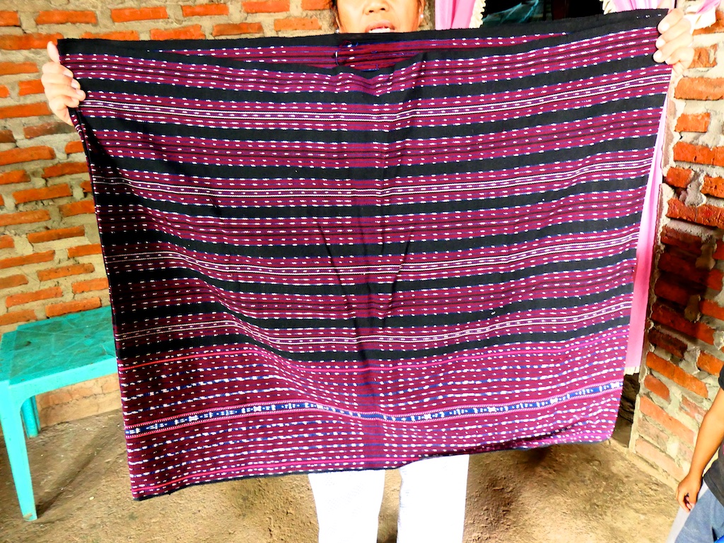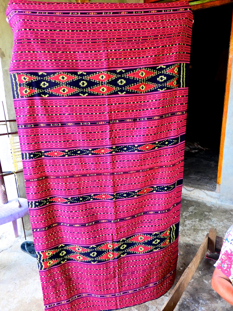 Nous atteignons ensuite le village de Sinar Hading où on nous montre un magnifique Kewatek Mea avec le motif Bela Ketupat.