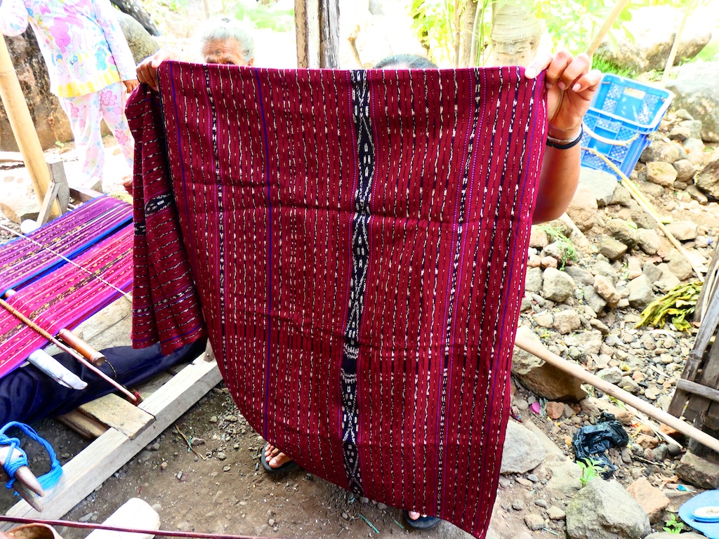 La dame qui habite cette magnifique maison et qui est tisserande nous présente plusieurs tissages kapas.