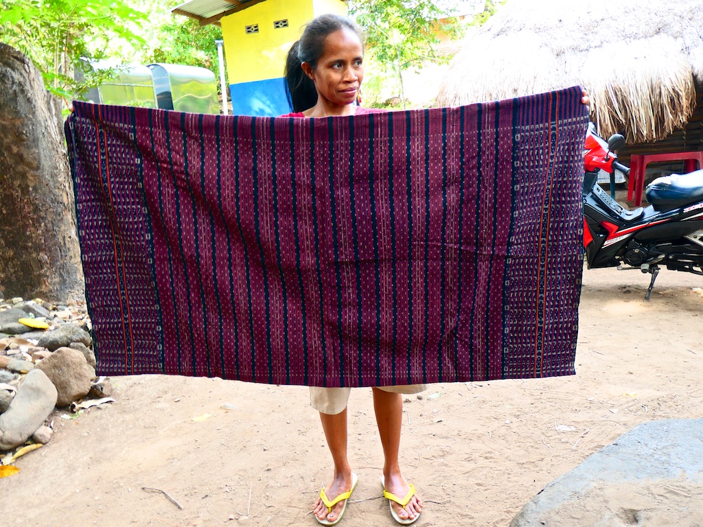 Le type du comptoir est tellement stressé qu’il me fait un billet Larentuka Kupang dans 2 jours au lieu d’un départ de Maumere …bref je vous épargne la suite ce sera une vraie galère de modifier mon billet au départ de Maumere mais en conclusion : on a un jour de plus à passer à Larentuka et en profite pour faire le tour des tisserands autour de Ile Mandiri …un autre volcan mais éteint pour l’instant !!