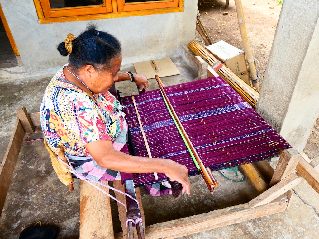 On va ensuite dans le district de Ilé Padung voir une tisserande appelée Mama Theresia Ritan qui est une experte et chez qui j’ai déjà effectué de nombreux achats …mais pas aujourd’hui !!!