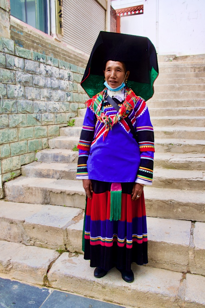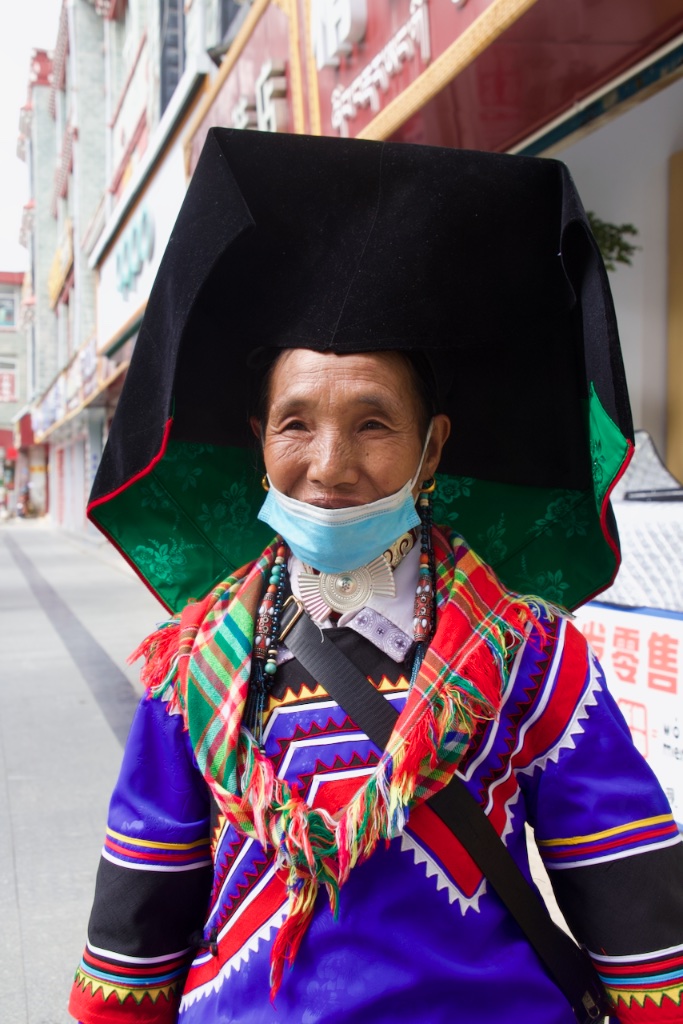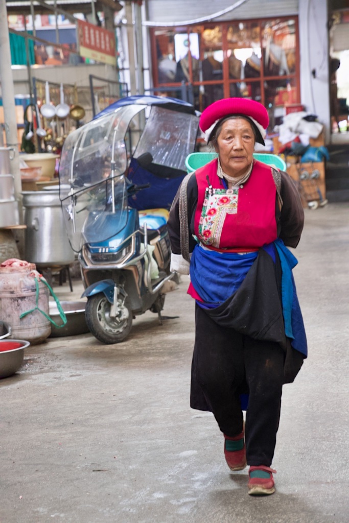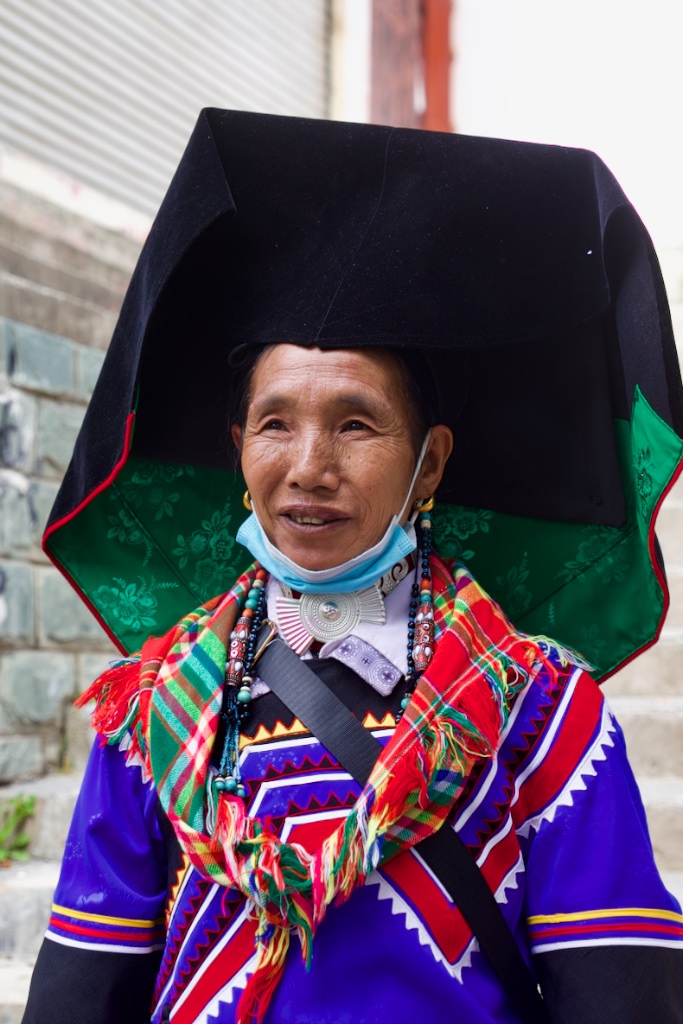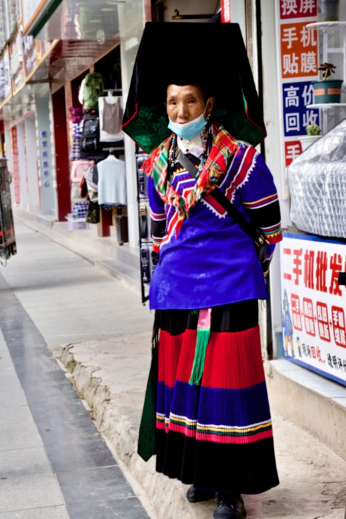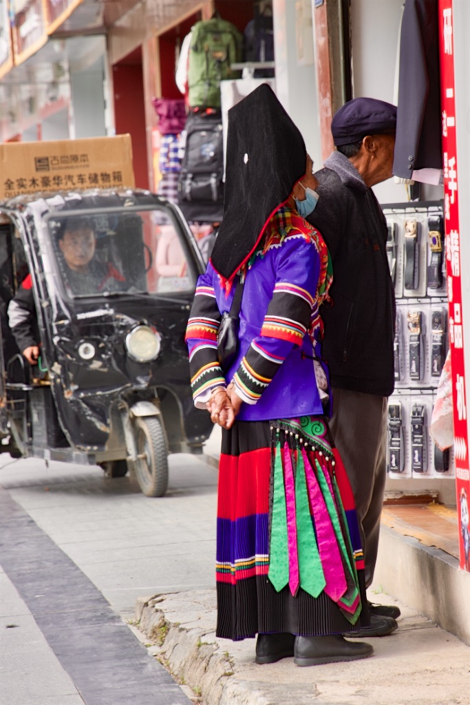 Mais en continuant notre ballade dans les rues de Shangri La , une autre surprise nous attend : je repère d’assez loin une femme black YI : la noblesse de ce groupe ethnique