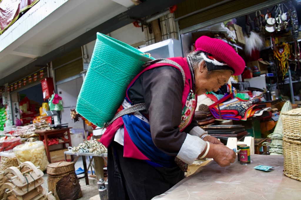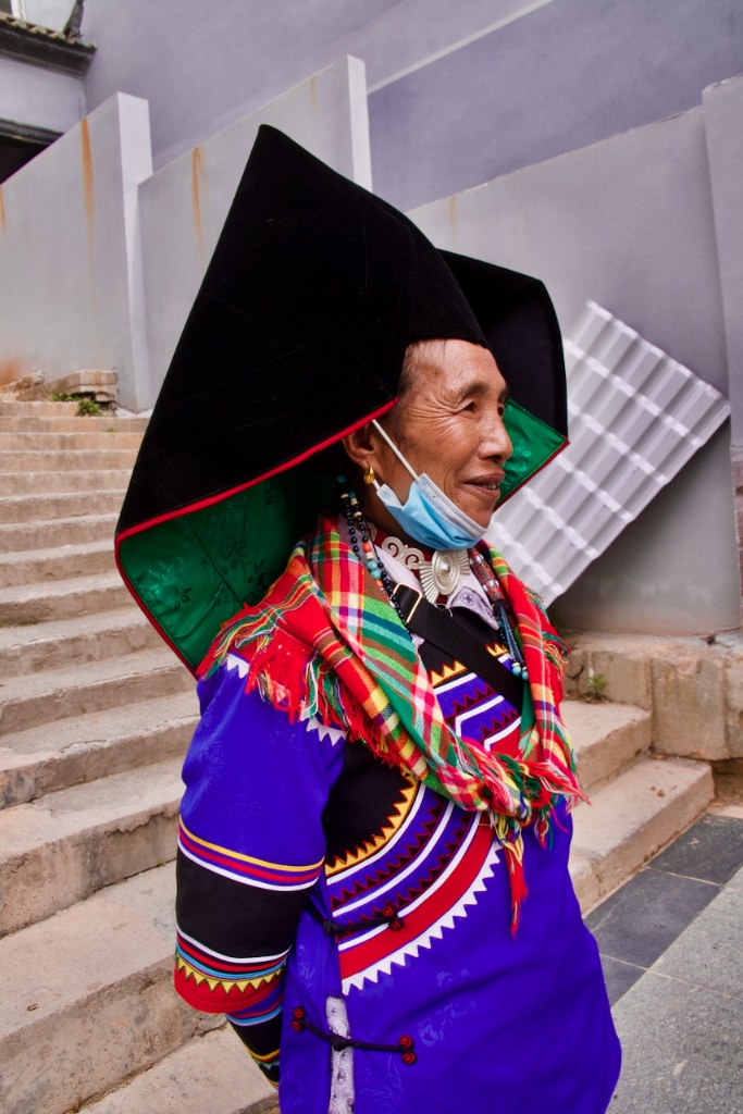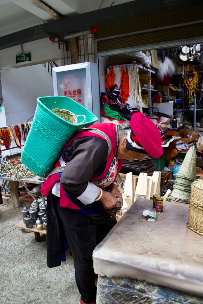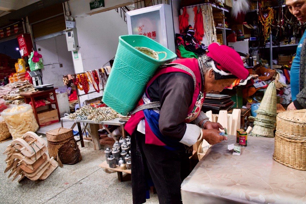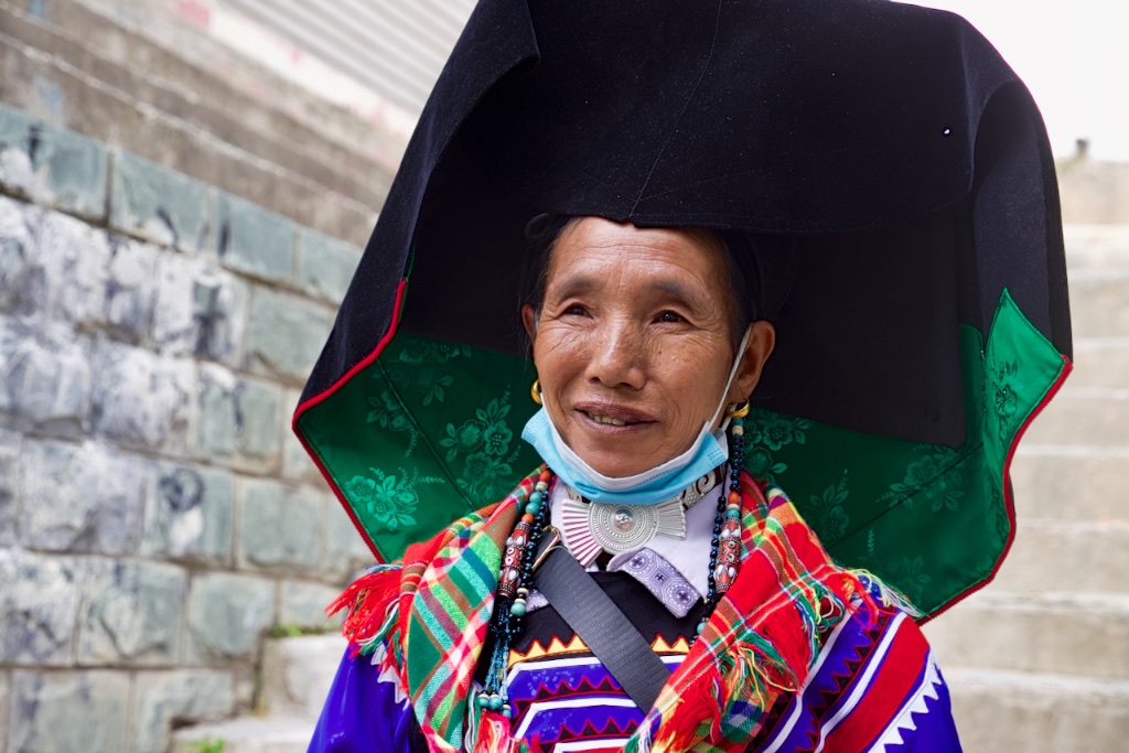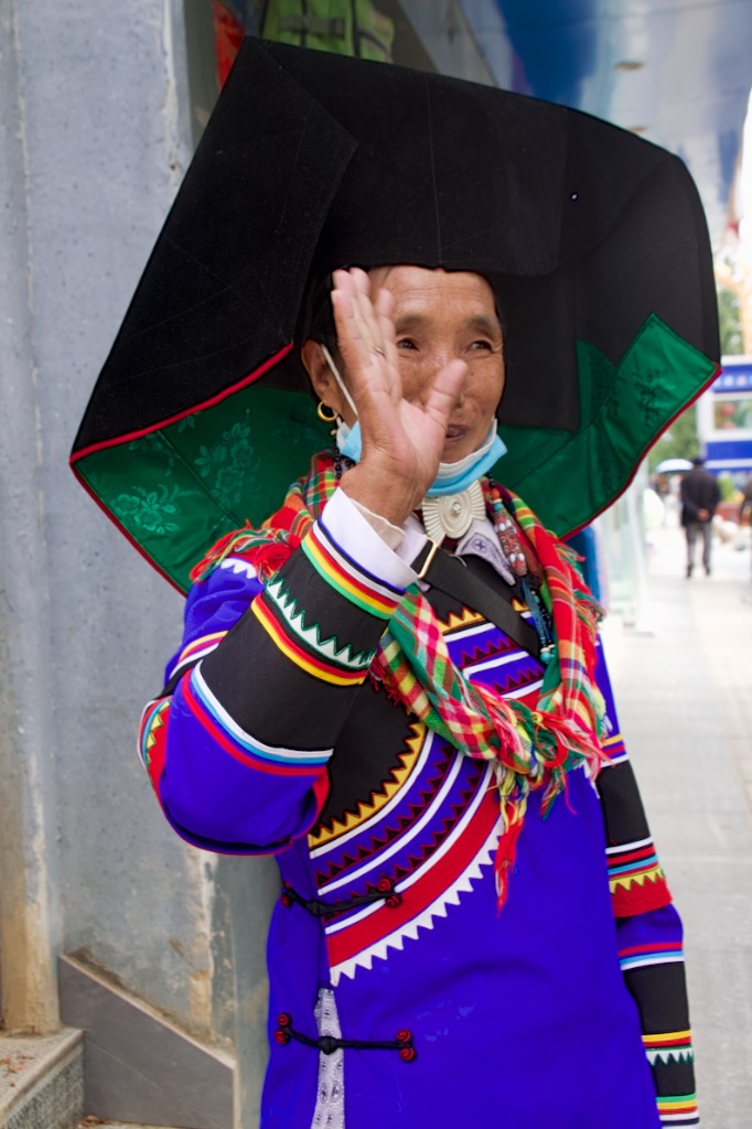 Mais en continuant notre ballade dans les rues de Shangri La , une autre surprise nous attend : je repère d’assez loin une femme black YI : la noblesse de ce groupe ethnique