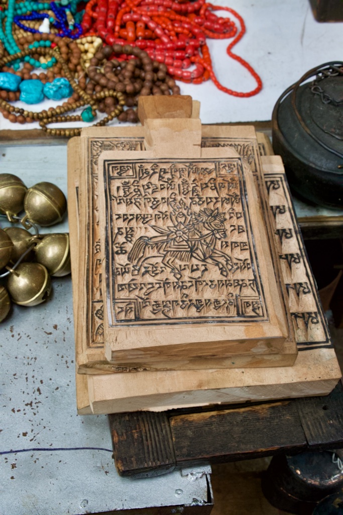 Photo 5 : cette planchette en bois sert à imprimer des drapeaux à prières…