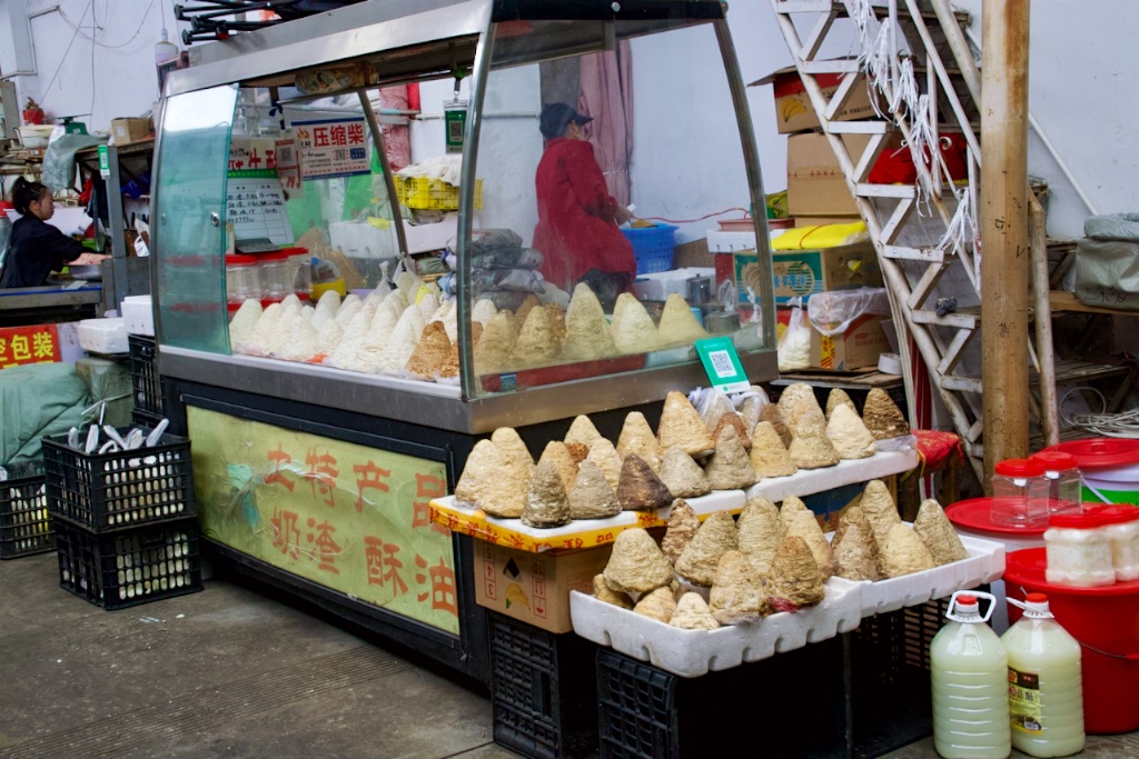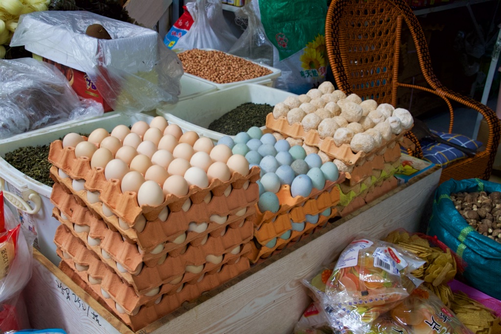 Photo 8 : les oeufs verts (oeufs préservés…) Sont des oeufs de canne avec un petit poussin à l’intérieur qui sont cuits à la vapeur …sans moi !!!