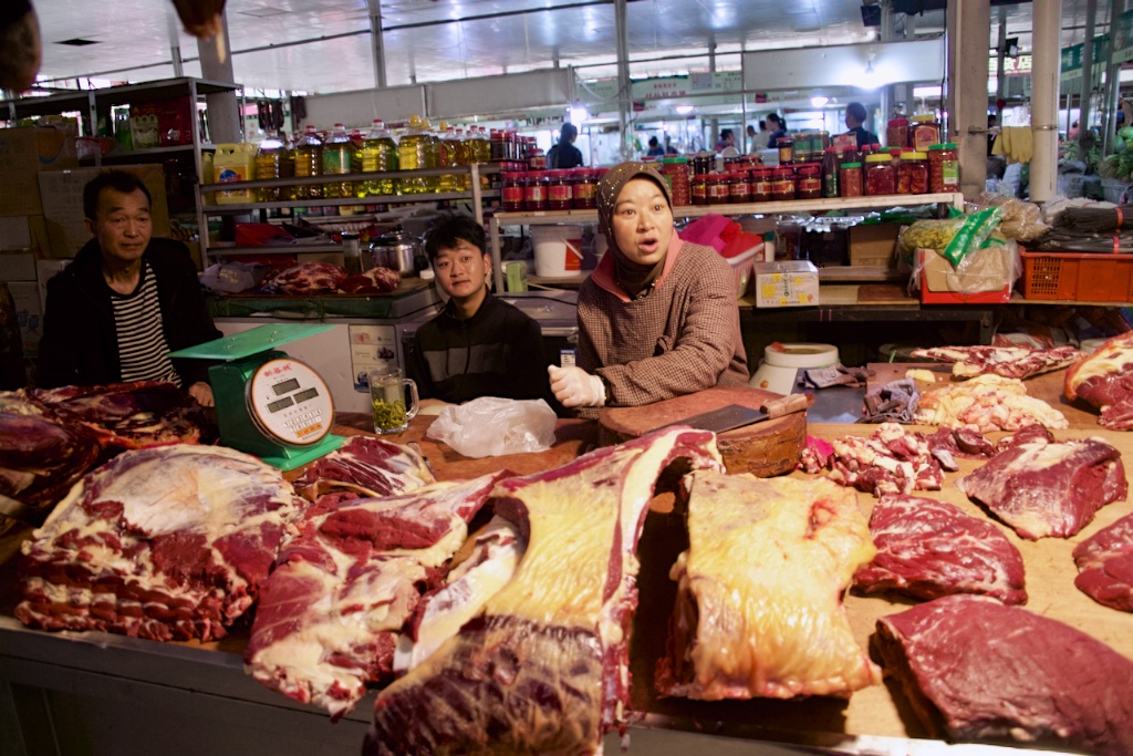 Ici ce sont les femmes qui tiennent le rôle de bouchère et elles sont vraiment énergiques!!!
